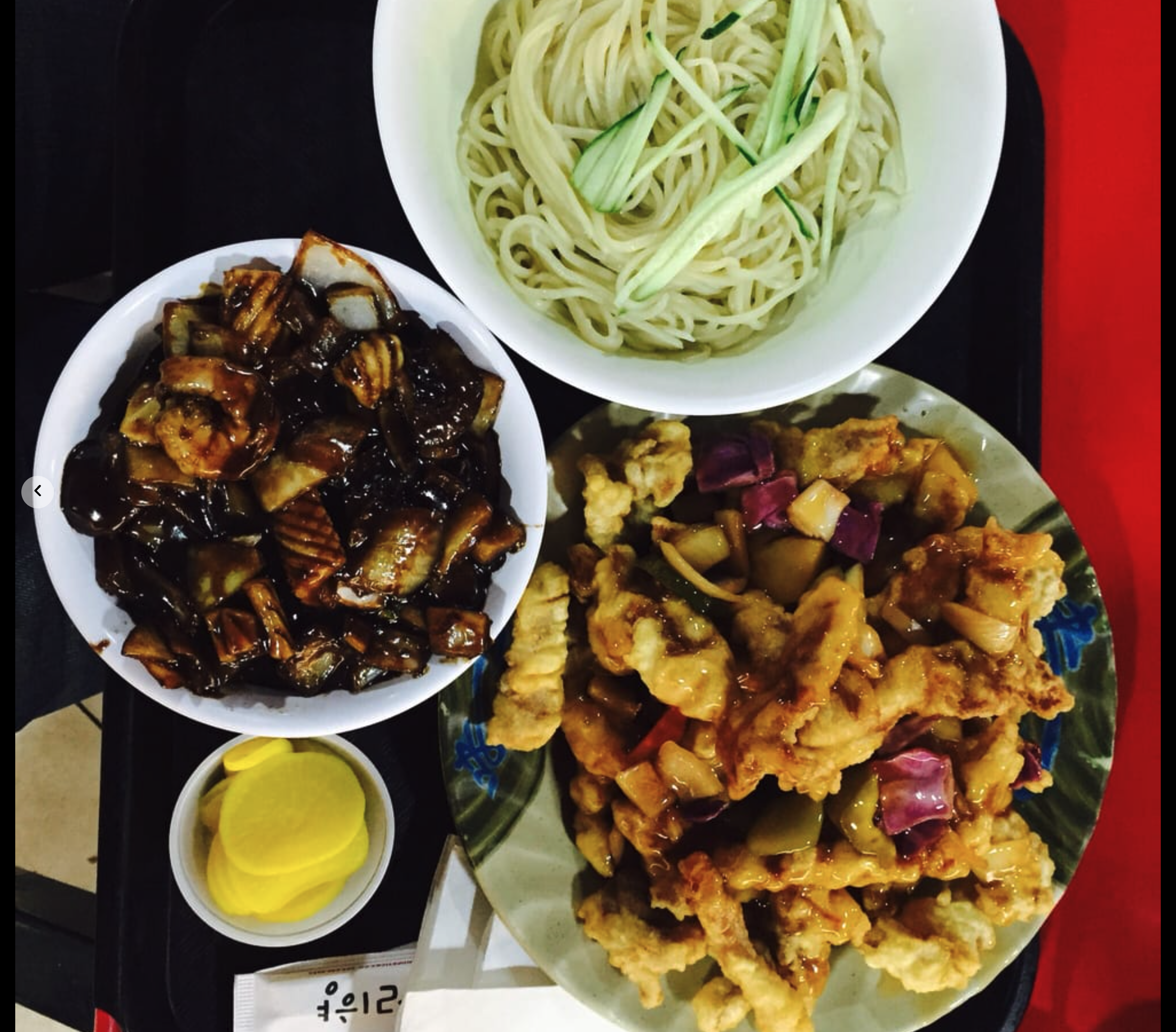 두 번째 음식으로 짬뽕를 주문했습니다. 돼지고기, 오징어 조금과 양파, 부추, 목이버섯 등이 양껏 들어갔습니다.불맛과 함께 돼지 육수 베이스의 묵직하고 얼큰한 국물이 한국에서 먹던 짬뽕 그대로의 맛입니다. 적당히 매콤하면서 부추와 양파의 식감과 단맛이 더해져 맛있게 먹었습니다.